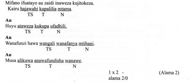 (i) Hoja zinazohusu kinaya zinaweza pia kujadiliwa kama kejeli au stihizai, mradi mtahiniwa amezifafanua zikaeleweka kuwa ni Kejeli.