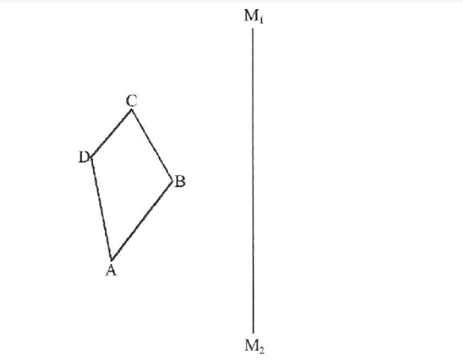 (a) Draw quadrilateral A’B’C’D’, the image of ABCD, under a reflection in the mirror line M1M2.(2 marks)