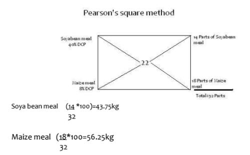 Mix a Pigs ration 22% protein using soya bean meal 40% DCP and maize meal containing 8%DCP.